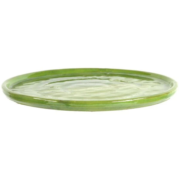 Bonsai Untersetzer (glasiert, hellgrün, rund) in den Abmessungen: 28cm Länge, 28cm Breite, 1.5cm Höhe. Im Giessverfahren hergestellt. Gute Standardqualität aus der Töpferstadt Yixing.