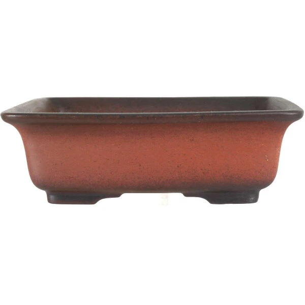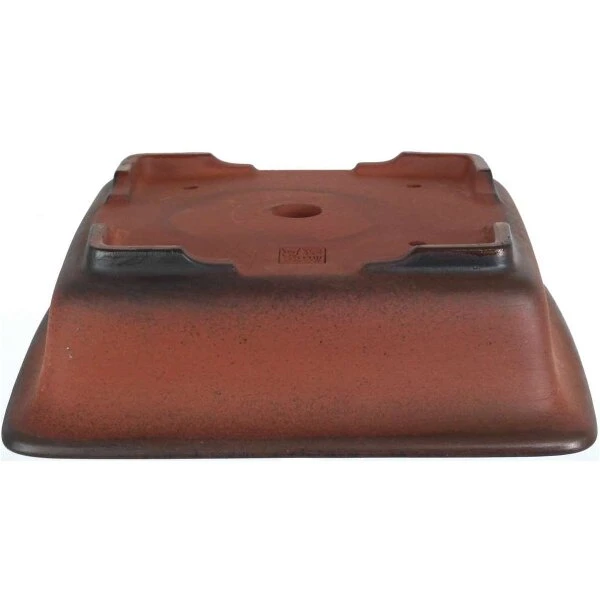 Bonsaischale (unglasiert, antik-rotbraun, quadratisch) in den Abmessungen: 20.5cm Länge, 20.5cm Breite, 6.5cm Höhe. Sehr gute Qualität aus der berühmten Töpferstadt Yixing.