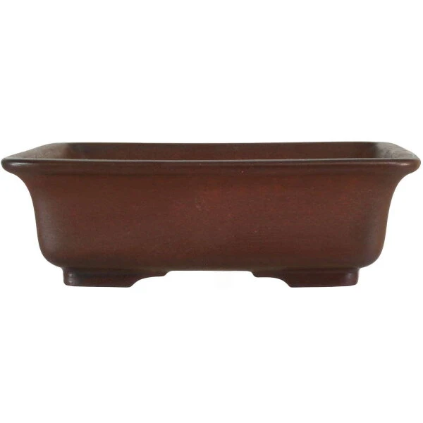 Bonsaischale (unglasiert, dunkelbraun, quadratisch) in den Abmessungen: 20.5cm Länge, 20.5cm Breite, 6.5cm Höhe. Sehr gute Qualität aus der berühmten Töpferstadt Yixing.