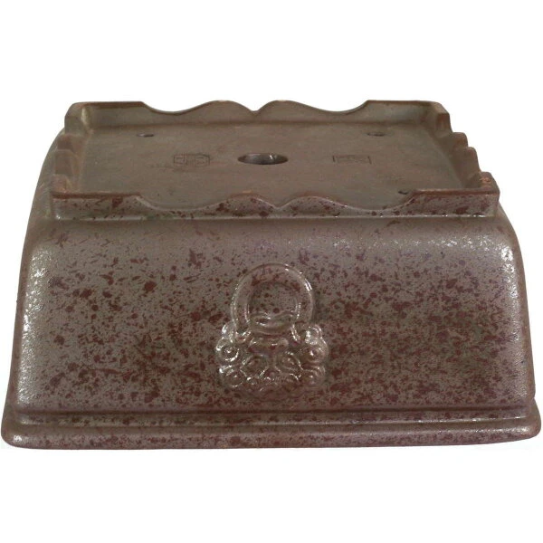 Bonsaischale (unglasiert, dunkelbraun, quadratisch) in den Abmessungen: 20.5cm Länge, 20.5cm Breite, 9cm Höhe. Sehr gute Qualität aus der berühmten Töpferstadt Yixing.