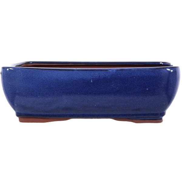 Bonsaischale (glasiert, blau, rechteckig) in den Abmessungen: 25cm Länge, 19.5cm Breite, 8cm Höhe. Gute Standardqualität aus der Töpferstadt Yixing.