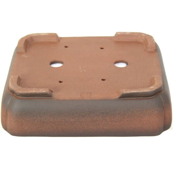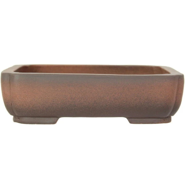 Bonsaischale (Unglasiert, Antik-Braun, Rechteckig), handgemacht, in den Abmessungen: 25cm Länge, 21.5cm Breite, 7cm Höhe.