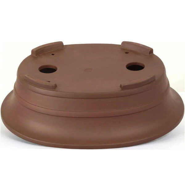 Bonsaischale (unglasiert, antik-braun, oval), handgemacht, in den Abmessungen: 36.5cm Länge, 29cm Breite, 10cm Höhe.