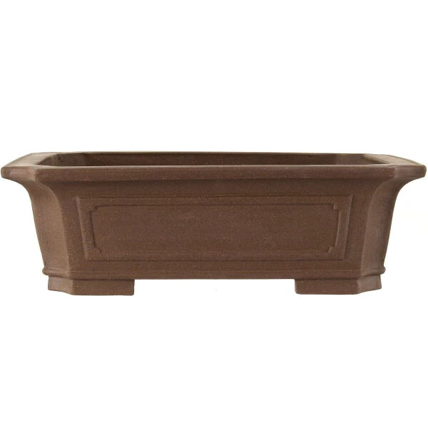 Bonsaischale (Unglasiert, Dunkelbraun, Rechteckig), handgemacht, in den Abmessungen: 36cm Länge, 27cm Breite, 11cm Höhe.