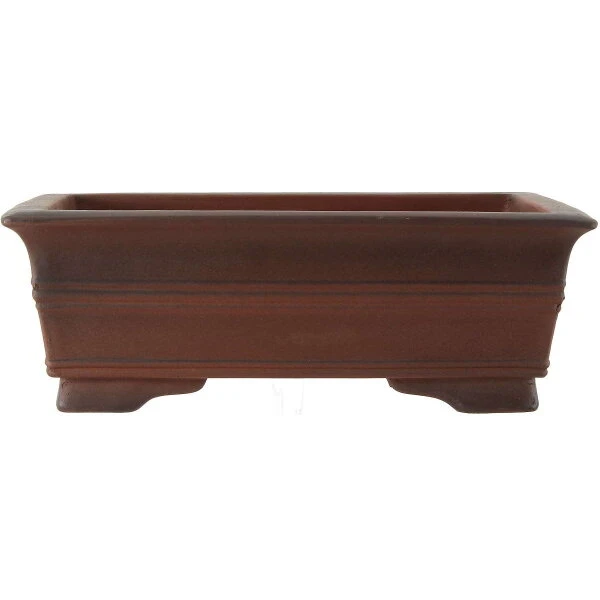 Bonsaischale (Unglasiert, Antik-Braun, Rechteckig), handgemacht, in den Abmessungen: 37cm Länge, 25.5cm Breite, 12.5cm Höhe.