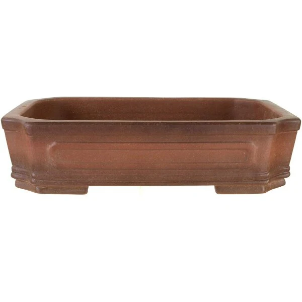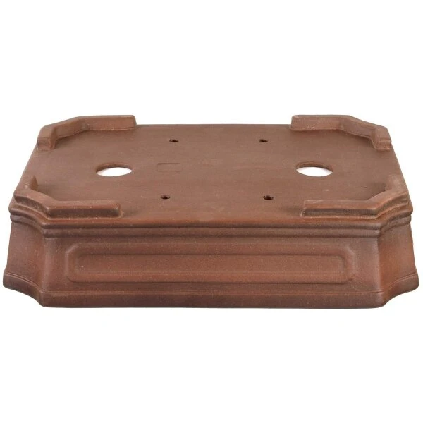 Bonsaischale (unglasiert, antik-braun, rechteckig), handgemacht, in den Abmessungen: 37cm Länge, 27cm Breite, 9.5cm Höhe.