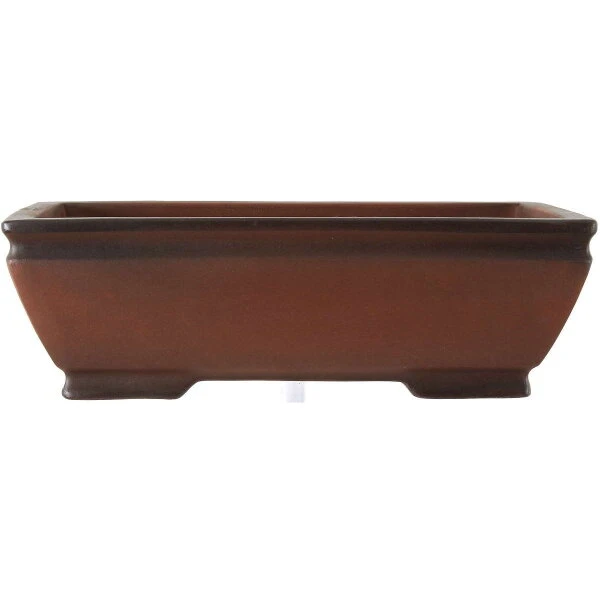 Bonsaischale (Unglasiert, Antik-Braun, Rechteckig), handgemacht, in den Abmessungen: 40cm Länge, 27cm Breite, 12.5cm Höhe.