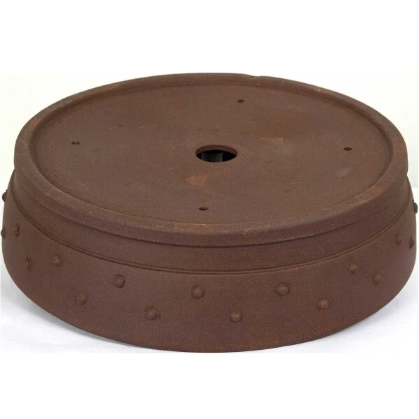 Bonsaischale (unglasiert, braun, rund), handgemacht, in den Abmessungen: 40cm Länge, 40cm Breite, 11.5cm Höhe.