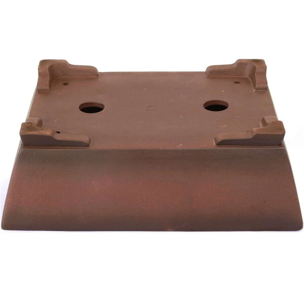 Bonsaischale (unglasiert, antik-braun, rechteckig), handgemacht, in den Abmessungen: 44cm Länge, 33cm Breite, 14.5cm Höhe.