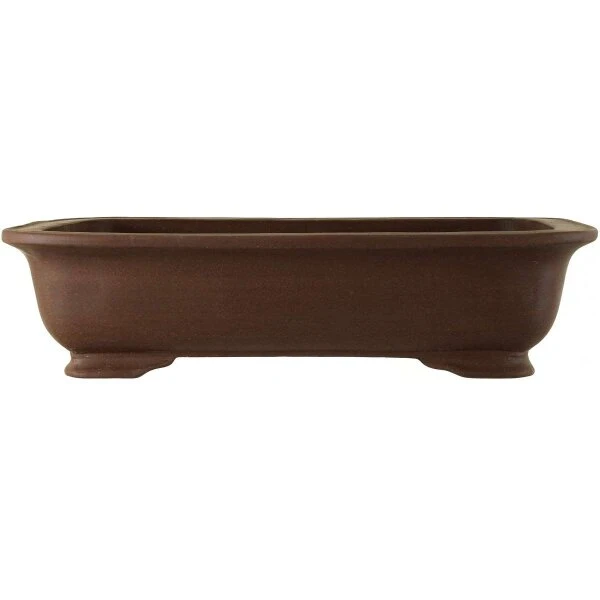 Bonsaischale (Unglasiert, Dunkelbraun, Rechteckig), handgemacht, in den Abmessungen: 57.5cm Länge, 40cm Breite, 14.5cm Höhe.