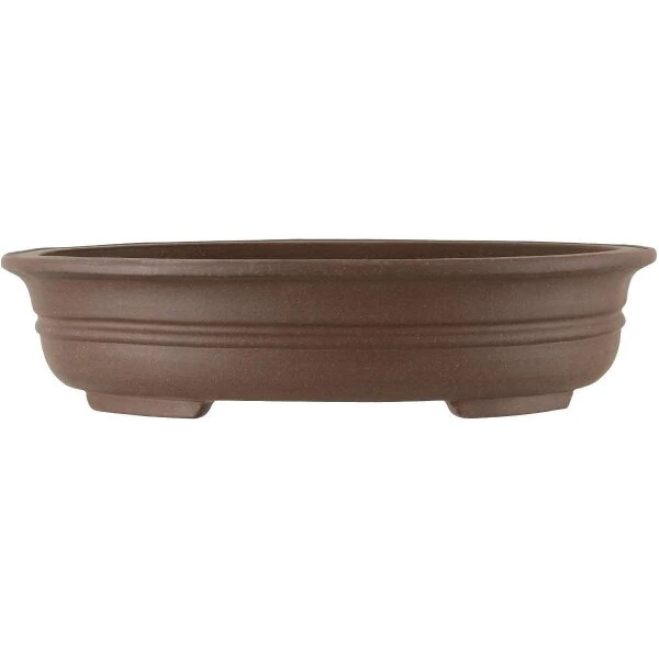 Bonsaischale (Unglasiert, Dunkelbraun, Oval), handgemacht, in den Abmessungen: 60cm Länge, 49cm Breite, 13.5cm Höhe.