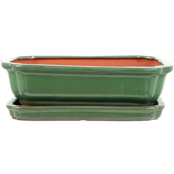 Bonsaischale Mit Untersetzer 26.5x21x7.5cm Grün Rechteckig Glasiert