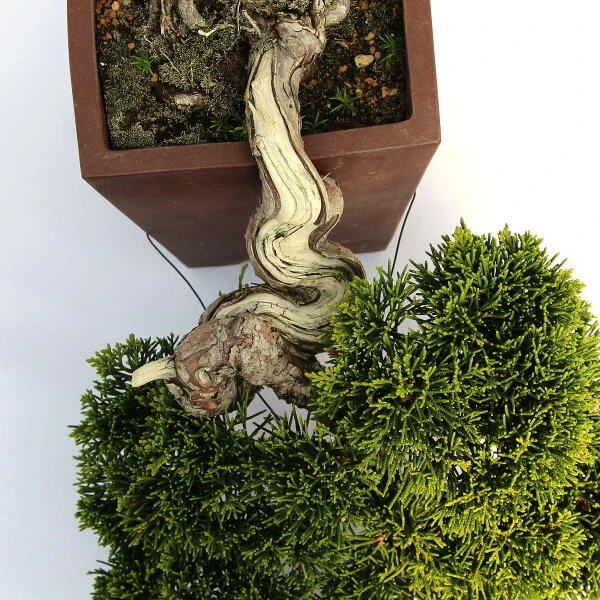 20 Jahre alter Chinesischer Wacholder in einer Bonsaischale. Dieser Bonsai ist ca. 22cm hoch und wurde aus einer japanischen Bonsaigärtnerei importiert.