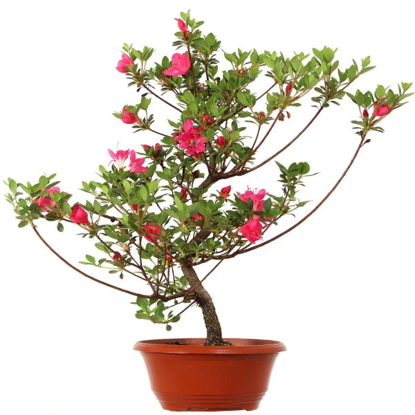 Besonders auffällig ist im April-Juni die üppige Blüte mit leuchtend Einzelblüten. Die Satsuki Azalee ist gut für die Gestaltung eines dekorativen Blütenbonsai geeignet. Oft haben Azaleen Bonsai kräftige Stämme.