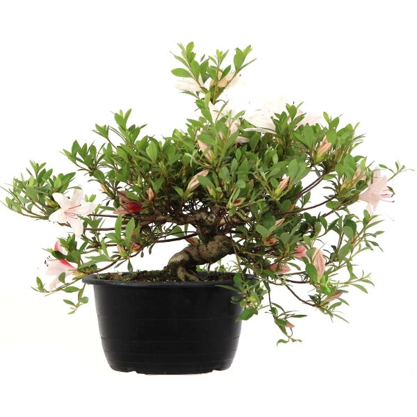 Besonders auffällig ist im April-Juni die üppige Blüte mit leuchtend Einzelblüten. Die Satsuki Azalee ist gut für die Gestaltung eines dekorativen Blütenbonsai geeignet. Oft haben Azaleen Bonsai kräftige Stämme.