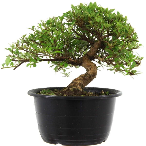 18 Jahre alte Japanische Satsuki Azalee (Sorte: Sachin) in einer Kunststoff Bonsaischale. Dieser Bonsai ist ca. 29cm hoch und wurde aus einer japanischen Bonsaigärtnerei importiert.